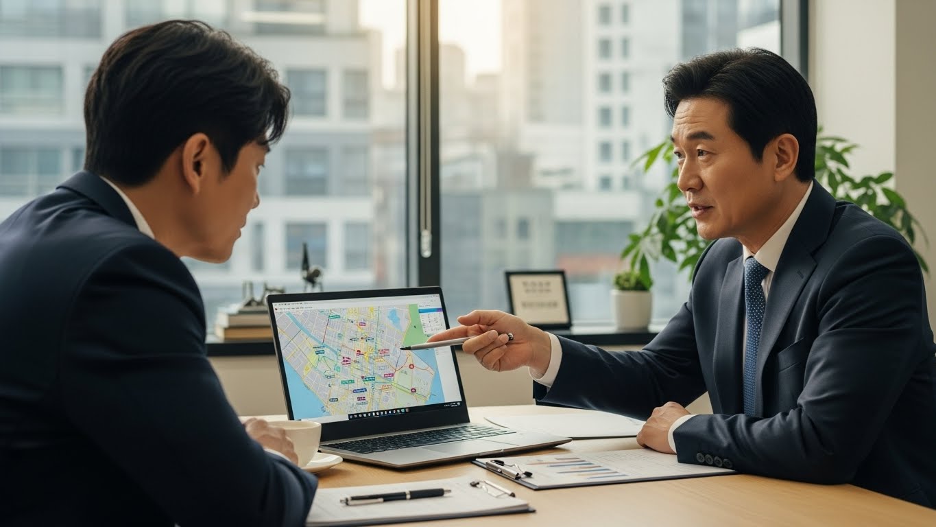 - 우측 지도: 지번·용도지역 시각화 표시